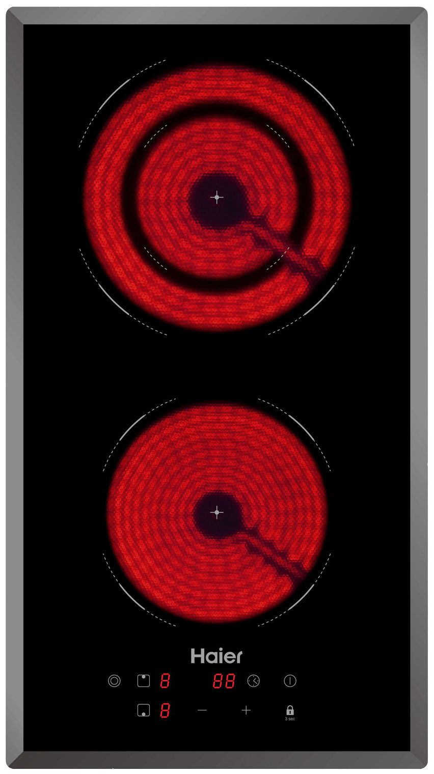 Электрическая варочная поверхность Haier HHY-C32DVB благодаря наличию двух нагревательных зон Hi-Light, которые предусматривают использование любой посуды, является универсальным решением для кухни небольшой площади. Одна зона имеет расширение, позволяющее готовить в посуде разного размера. Данная модель оснащена 9 уровнями мощности конфорок, таймером, технологией защитного отключения.